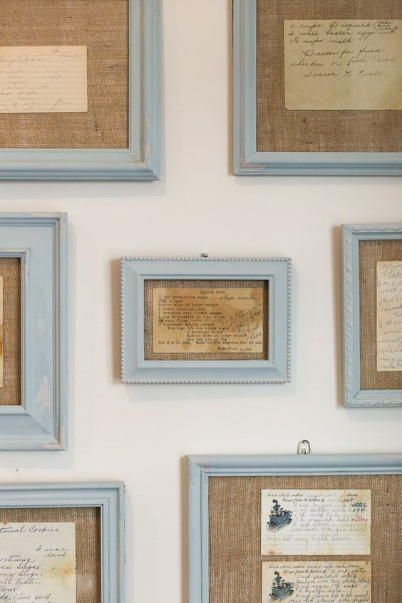 I love the recipe cards and spoon collections on the wall. I could image them hung together in a very pretty display in the kitchen. Why keep them in a recipe box or in a drawer when you can have them out to enjoy every day!