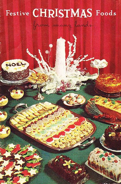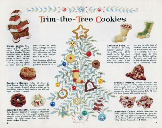 Another inspiration is the holiday cookbooks and ads promoting holiday goodies. The graphics stick with the same themes of bright greens and cherry reds, but I did notice, as I did in the book of Christmas carols above, the addition of blues and teals.