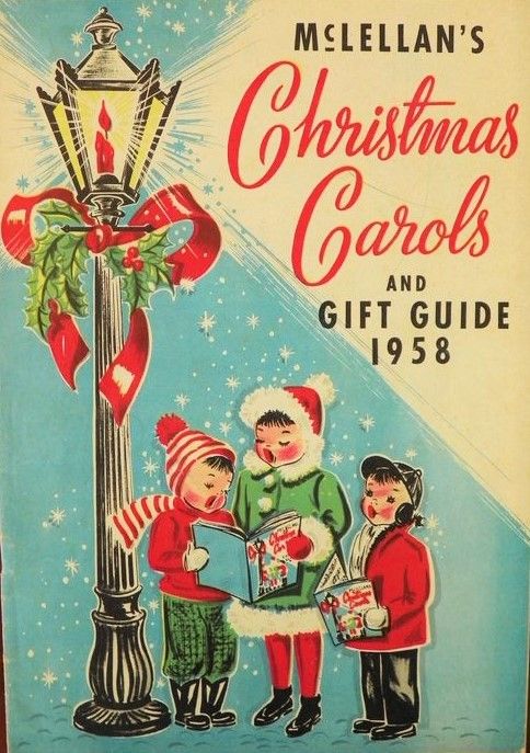 Christmas in 1958 wouldn’t be complete if it weren’t for the carolers going from house to house singing songs of Christmas joy. The children on this song book are brightly dressed with rosy cheeks and a bright blue sky filled with twinkling snowflakes gently falling all around them.