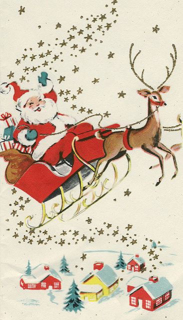 Again, the theme of bright and cheery continues with the whole family decorating the Christmas tree from top to bottom. The colors are brighter and lighter than we use today. The greens are avocados and olives, and the reds aren’t scarlet but instead the color of summer cherries. The trees may be green but are brightened and lightened with either white flocking or garland.